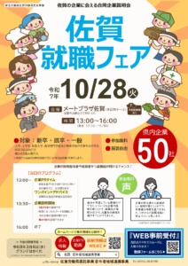 令和7年10月28日(火)にメートプラザ佐賀で開催されます「佐賀就職フェア」へ出展致します。