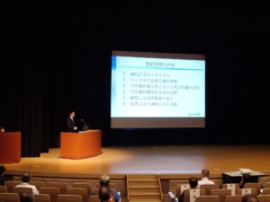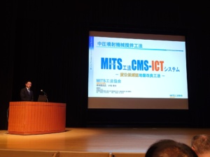 当日は技術委員長の小牧様より「中厚噴射機械攪拌工法(MITS工法CMS-ICTシステム)」についてのプレゼンテーションを行い、多くの方がご聴講して頂きました。
