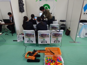 当日は会社概要などに加え、重機の模型を用いた遠隔操作体験を実施しました。